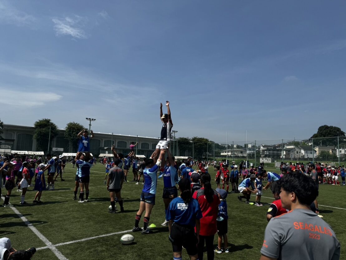 ラグビーセッションをはじめ、綱引きやヨガ教室、筋トレ教室などを実施し、キッチンカーが来たりと大盛況のイベントとなりました。