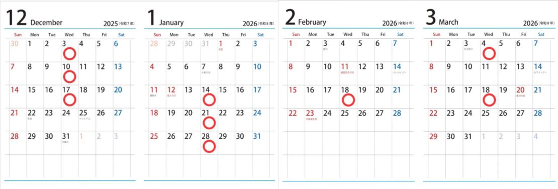 *冬季休暇・春期休暇に伴い、通常と異なります。